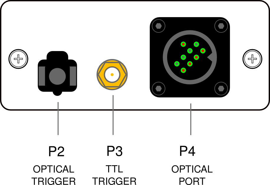 The 905 will also accept TTL and optical trigger inputs on ports P3 and P2, shown here.